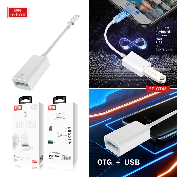 The Earldom OT48 Lightning to OTG Adapter allows you to connect USB devices to your iPhone or iPad. This Lightning to OTG adapter is designed for fast and efficient data transfer, providing you with an easy solution for connecting keyboards, USB flash drives, and other accessories. Whether you need to transfer files or charge devices, the Earldom OT48 Lightning to OTG adapter ensures seamless connectivity with your Apple devices, making it a must-have for any iPhone or iPad user.