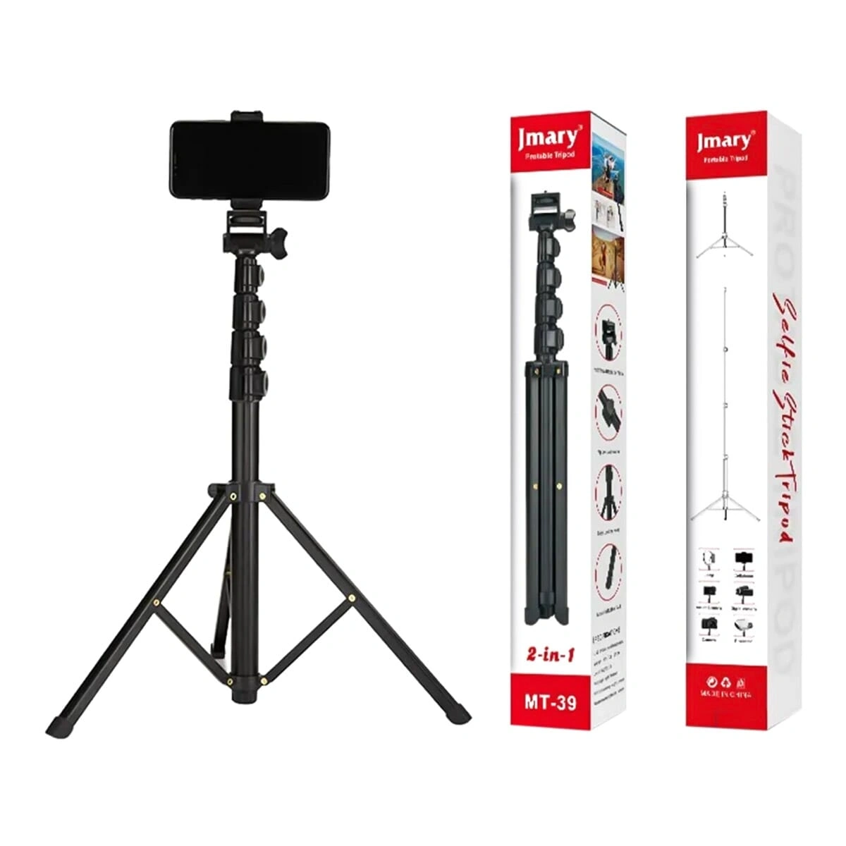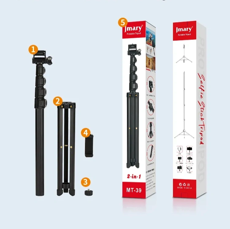 Model:MT-39Material:Aluminum+Iron+ABSFolded Length: 440mmMinimum Height: 460mmMaximum Height: 1530mmNet weight: 567gSections: 5Load capacity:1kgUNC 1/4 screwPacking List:Tripod*1Phone Clip*1