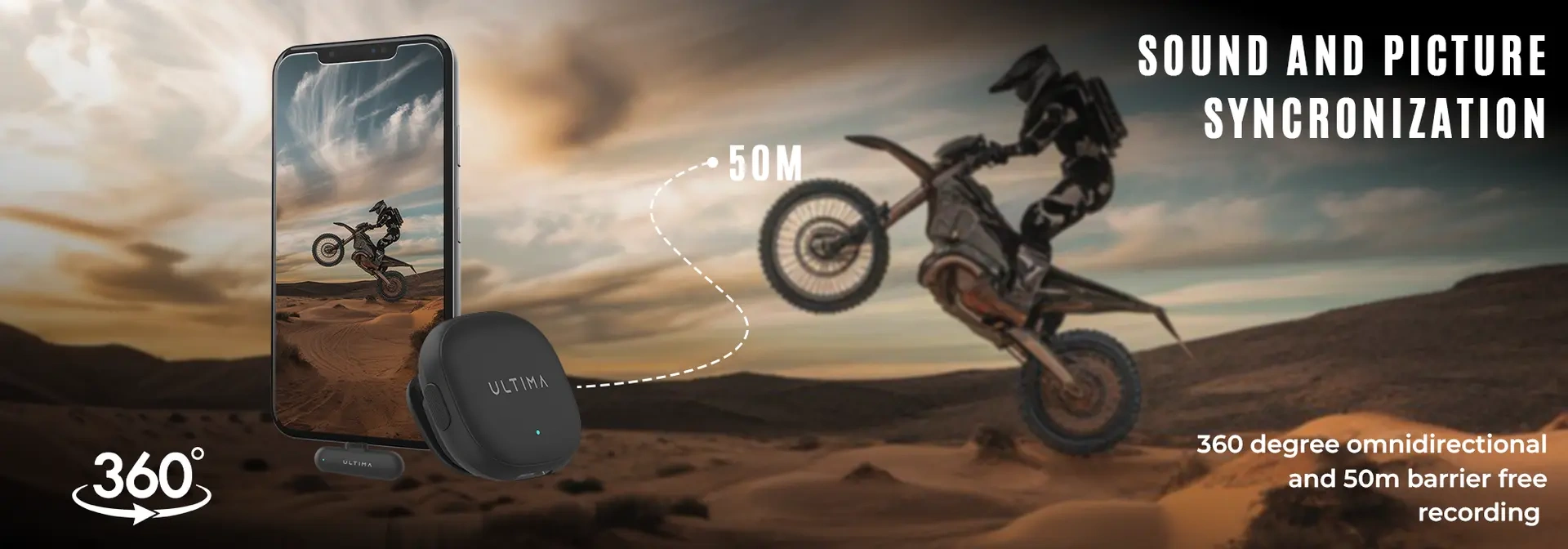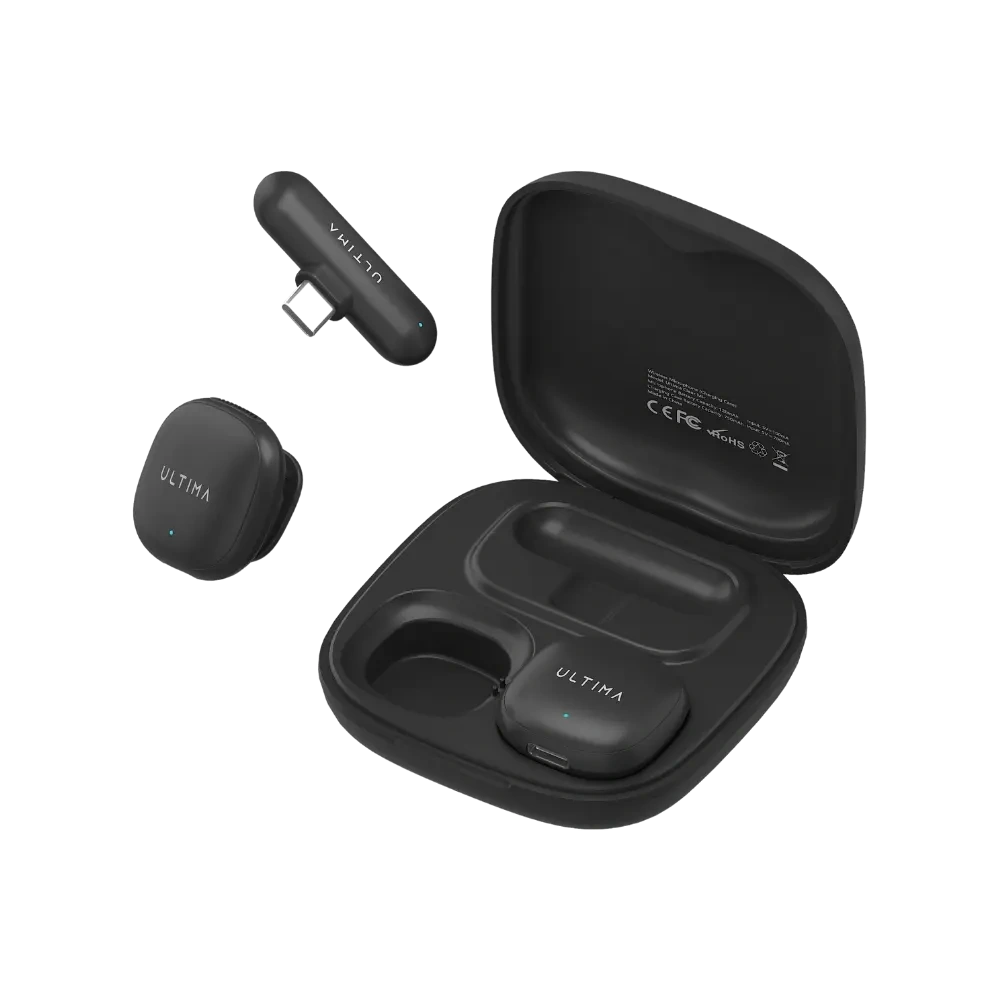 Ultima Clear Mic with AI Noise Cancelation, 50m barrier free recording, magnetic lip ons, and very long battery backup.