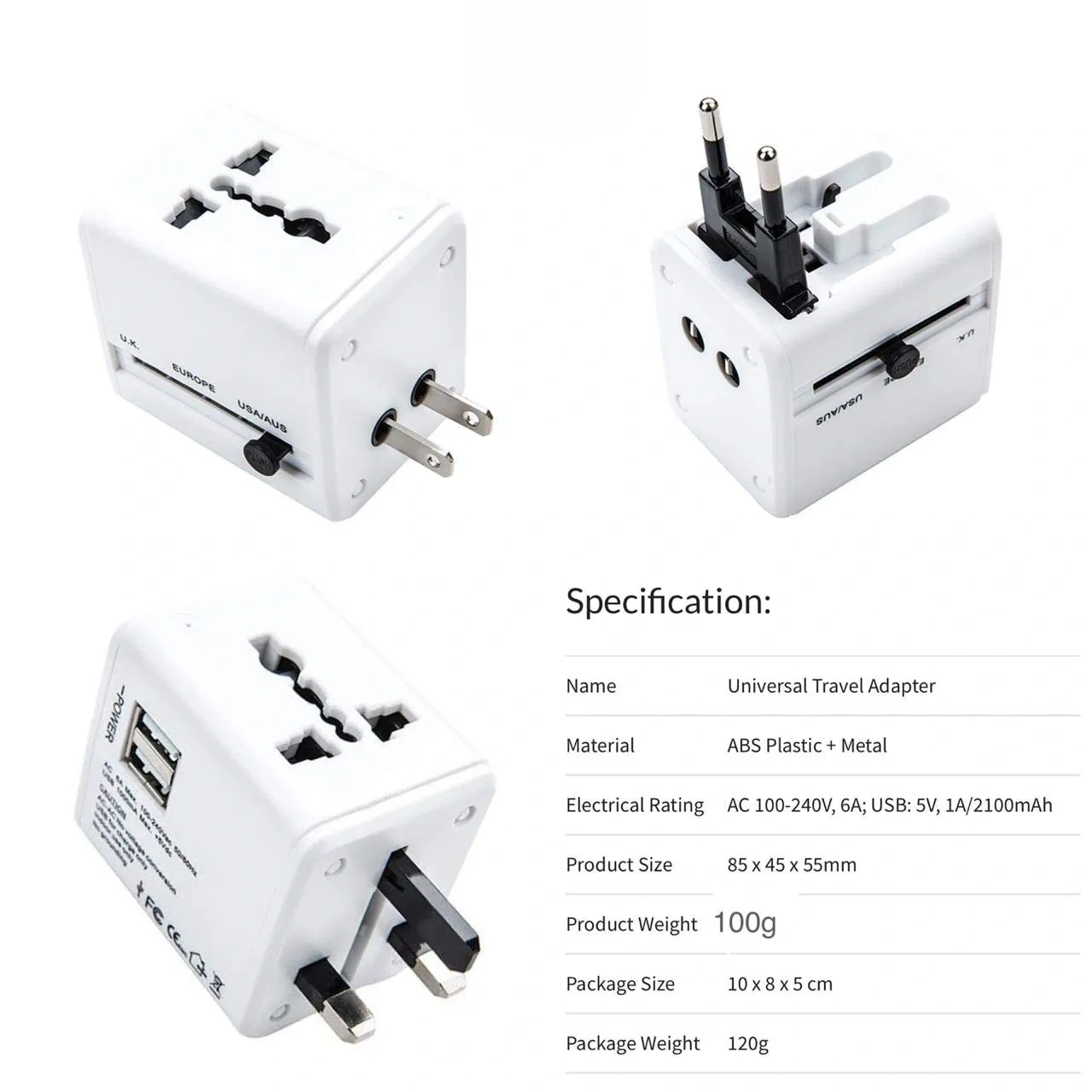 Compact & Lightweight: Ultra-compact and portable design, making it an ideal travel companion. Input/output voltage ranges from AC100~250V; USB output is DC 5V/2.1A Max.