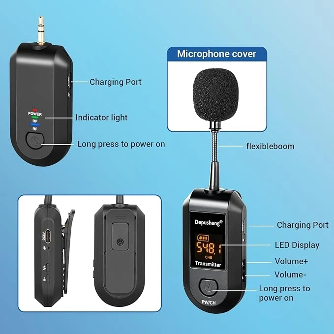 Widely compatible with multiple scenarios: Suitable for people using wireless head-on 2.4G microphone .Receiver plug 3.5mm 1/8'' & 6.35mm 1/4'' microphone, which is very suitable for tour guides/fitness coaches/yoga teachers/classroom
